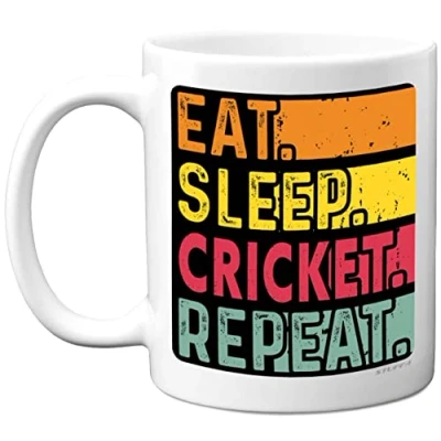Birthday Mug Gifts for Men Women Him Her Eat, Sleep, Cricket, Repeat Funny Happy Present Gift Sport Game Lovers, 11oz Ceramic Dishwasher Safe Premium Mugs