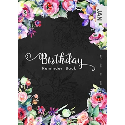 Birthday Reminder Book: B6 Small Notebook for Recording Birthdays and Anniversaries Monthly Index Watercolor Botanical Flower Design Black