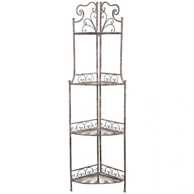 ManoManoGeneral description Practical, elegant, and versatile etagere made of rust-coloured wrought iron, designed for both outdoor and indoor use. This tiered plant holder features a solid structure and attention to detail, making it a durable addition to any space. Technical specifications Dimensions: L46 x DP32 x H155 cm Material: Hand-crafted wrought iron Usage This wrought iron shelf can be utilized in various ways, including: As a pot holder in the garden For displaying plants at home As a floor shelf for objects In the bathroom, living room, or kitchen As an external shelf for tools on balconies and terraces Other information This plant stand serves not only a practical purpose but also acts as a decorative element suitable for homes, restaurants, shops, and hotels.