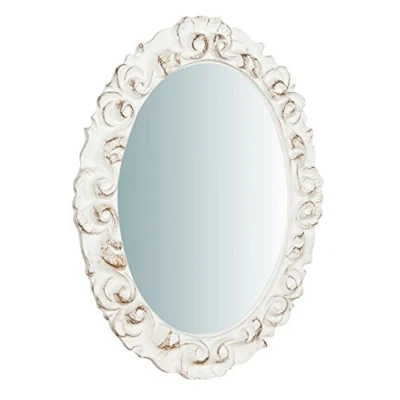 Oval Wall Mirror - Shabby Style Hanging Mirror with Wooden Frame and Antique White Finish Handmade by Florentine Master Artisans Material: the mirror is made of glass; the frame is made of wood enriched with beautifully finished shabby style decors; the back is composed of a wooden plate to hold the mirror firmly The shabby chic style, elegant and refined, makes it perfect for any home and is also extremely convenient to use with hooks that allow you to hang it safely Measurements - The product measures with the frame: 25 cm wide, 2.5 cm deep and 31 cm high