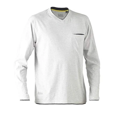 Bisley Workwear UKBK6933_BGGY Flex & Move Cotton Rich T Shirt V Neck Long Sleeve Grey Marle, M