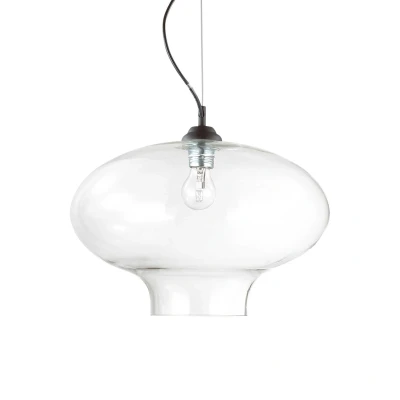 Bistro 1 Light Dome Ceiling Pendant Black Clear Blown Glass Round, E27