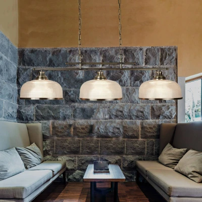 Bistro 3 Light Ceiling Pendant Bar White, Antique Brass with Glass Shades, E27