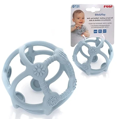 Baby teething aid: different surface structures offer your little darling variety and a gentle massage, relieves pressure and distracting when teething For individual development: the grasping toy is a motor skills toy and promotes fine motor skills, the sense of play and touch of your baby Easy to grip: the dimensions and design of the Bite&Play have been specially designed to meet the needs of babies and toddlers. Made from safe silicone: the silicone in this product is free from BPA and phthalates and can be used without hesitation, is washable and can be disinfected in the vaporiser Flexible and flexible: for extra fun and discoveries, the ball can be pressed, kink, toss roll and much more