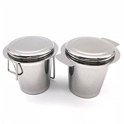 BITEYI Tea Infuser Stainless Steel Extra Fine Mesh Strainer Filter with Double Handles & Lids for Loose Leaf Teas (Set of 2)