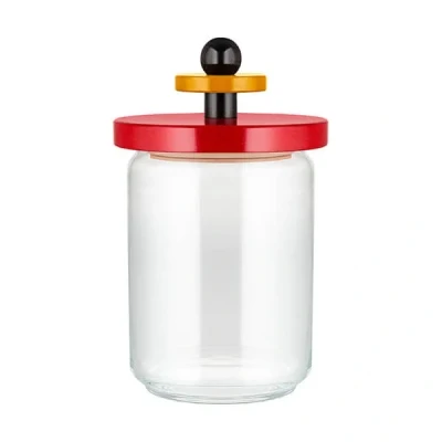 Harts of SturStore your pantry essentials in style with this Alessi 1000ml glass red jar, a masterpiece of design by Ettore Sottsass. The jar’s sleek, minimalist design is available in multiple colourways, allowing it to seamlessly blend into any kitchen aestheticIts hermetic closure ensures that dry foods such as rice, pasta, or spices stay fresh, preserving their natural flavours and aromas.Partially handcrafted in Italy, the smooth beech wood lid adds a natural warmth, contrasting beautifully against the pristine glass body. This kitchen essential is perfect for organising your pantry with an artful touch, while also profiting a durable, eco-friendly storage solution.Capacity: 1000mlDimensions: 14 (H) x 14.5 (W) x 21.5 (L) cm.Weight: 0.68kg.