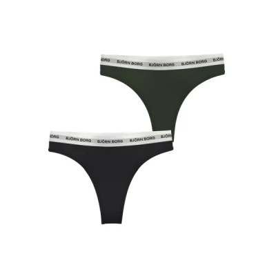 Björn Borg CORE LOGO Thong 2 PACK Thong, Women's, Size: Large, Black/olive