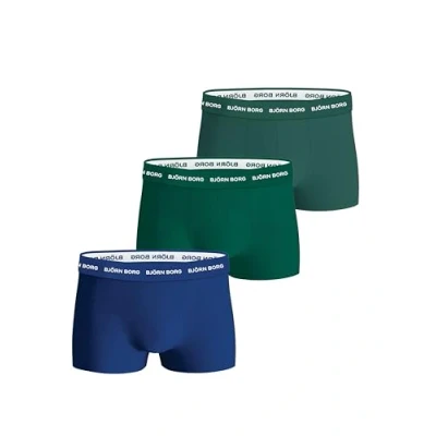 Björn Borg Men's Cotton Stretch Trunks 3 Pack with Logo Waistband, Blue