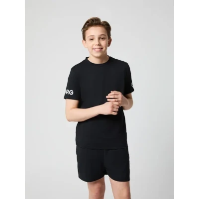 The Björn Borg Borg T-Shirt for kids is made from a soft recycled polyester stretch quality fabric. It comes in a regular fit with a round neck, a longer length designed to include overhead exercises, and a longer back for extra coverage. With insert panels under the arms and higher armhole construction for optimal movement, and the iconic Borg logo on the arms. * Recycled material * Longer length and back coverage * Higher armhole construction * Insert panel under arms * Iconic Borg logo on arms