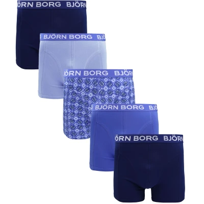 Bjorn Borg Boxers Cotton Stretch 5-Pack Multicolour Bjorn Borg Boxers Cotton Stretch 5-Pack Multicolour in the color Black, Blue and Dark Blue with a fit Body-Fit is made from Cotton and Stretch with a Plain and Printed design.