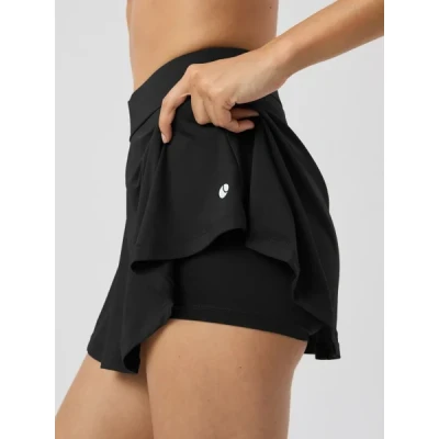 The Björn Borg Ace Jersey Skirt for women is made from recycled polyester stretch in soft rib fabric. It has a regular waist and a short length, with a branded elastic at the waist for support. Featuring inner shorts for added comfort. * Recycled material in soft rib * Inner shorts for comfort * Regular waist and short length * Branded elastic at waist