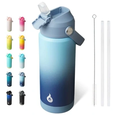 BJPKPK Insulated Water Bottle with Straw Lid, 18oz Thermos Bottles Soft Nozzle, Flex Handle & Non Slip Boot, BPA Free Leak Proof Stainless Steel Metal Thermos, Tumblers, Cups,Sky