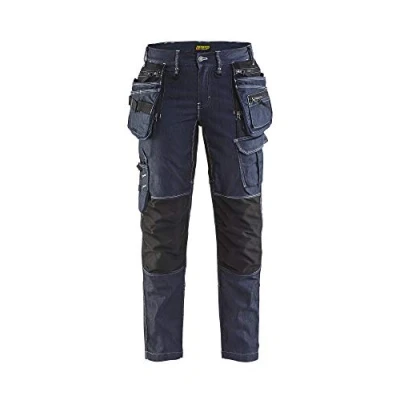 Durable ladies craftsman trousers with manufacturer lifetime seam guarantee and at least 4 times stronger than a normal denim trouser. Fine Swedish design, check size guide image and size slightly up if in any doubt 55% cotton, 30% polyester, 15% polyamide, denim, coated, CORDURA Denim stretch, 340 g/m² CORDURA 1000-reinforced nail pockets, back pockets and ruler pocket. CORDURA-stretch reinforced knee pad pockets Stretch panels in crotch, calf and knee pocket. 2-way stretch. Women's cut Leg pocket with bellow and flap, with velcro closure and inner telephone pocket in mesh. Nail pockets - extra wide, fitted with tool holders and additional tool compartments, Zipper for fixed or loose nail pockets