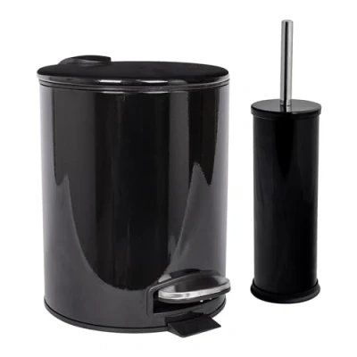 Sleek Stainless Steel Design: The 5L Pedal Bin and Toilet Brush set features a sleek, stainless steel construction, providing a modern and classic accent to any bathroom, kitchen, or home office for an upgraded look. Sleek Stainless Steel Design: The 5L Pedal Bin and Toilet Brush set features a sleek, stainless steel construction, providing a modern and classic accent to any bathroom, kitchen, or home office for an upgraded look. Removable Inner Bucket: The 5L Pedal Bin includes a removable plastic inner bucket, allowing for easy emptying and cleaning, ensuring a hassle-free waste management experience that fits seamlessly into any space. Effective Toilet Cleaning: The Toilet Brush features stiff bristles for thorough cleaning, tackling stubborn stains with ease. Its enclosed tower keeps it discreetly stored, ensuring your bathroom remains clean and organized. Compact and Functional Set: Ideal for small spaces, the 5L Pedal Bin and Toilet Brush set is perfect for bathrooms, kitchens, or home offices. Dimensions: Bin: 5L capacity, 20cm diameter, 26cm height. Brush: 9cm diameter, 38cm height.