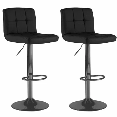 Black 2x Faux Leather Cuban Swivel Bar Stools with a Matt Legs