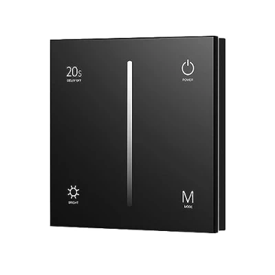 Touch panel controller for use with single colour 12-24V LED. Ultra-sensitive touch-dimming centre slide in a high-strength glass finish, as well as button dimming level control and various scenario settings. Used as a PWM dimming controller – connect to LED directly. Compatible with RF 2.4G Single and multi-zone remote control and can be paired with multiple controllers. 5 Years Manufacturer Warranty., Manufacturer: G.W.S LED