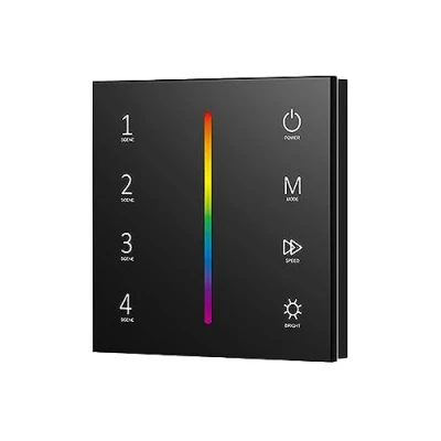 Black 4CH*3A DC 12V 24V 2.4GHz RF Wall Mounted Touch Glass Panel Controller for RGB LED Strip Lights