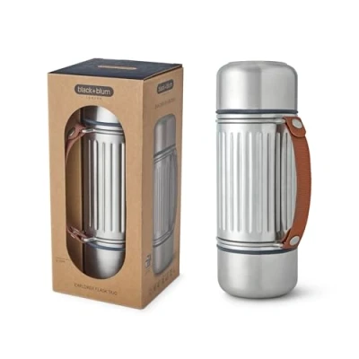 BLACK+BLUM Insulated Explorer Flask Duo Vacuum 304 Stainless steel with Leak Proof Lid, Nylon Carry Strap and two double walled cups Keeps Hot Cold for 24 hours 1L