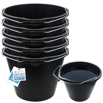 Versatile Capacity - The 14-litre or 3-gallon capacity of this plastic bucket is ideal for various tasks, from gardening to cement mixing. Its size makes it a practical water bucket and cleaning bucket, suited for multiple needs. Durable Construction - Crafted from strong plastic, this black bucket withstands heavy use. It serves as both a reliable car cleaning bucket and a mixing bucket for concrete, ensuring durability in demanding conditions. Convenient Pack Options - Available in packs of 1, 2, 3, or 5, our builders buckets cater to different project scales. Choose the perfect number of plastic buckets with handles for your garden bucket or tool bucket needs. User-Friendly Design - Featuring a built-in spout and a metal handle with comfortable plastic grip, this large bucket simplifies pouring and carrying. Ideal as a horse water bucket or a car wash bucket, it enhances ease of use. Multifunctional Utility - This heavy duty bucket excels in various roles, from a bath bucket to a paint bucket. As a reliable large buckets plastic, it seamlessly transitions between a mixing bucket and washing bucket for diverse tasks.