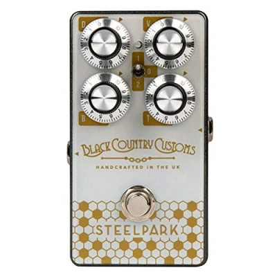 Handcrafted in the UK and cased in metal this versatile Boost pedal provides masses of headroom to help you push your amp harder and cut through any mix Ideal for stacking either before or after other gain pedals on your board. Great to hit your amp hard or as a volume boost The four controllers allow you to dial in Drive, Bass Control, Volume Control and a Treble Dial The Steelpark can be run in one of 3 modes: Pre-Mid Boost, Clean No Pre Boost, Pre-Low Mid Boost Rugged metal casing with low battery consumption