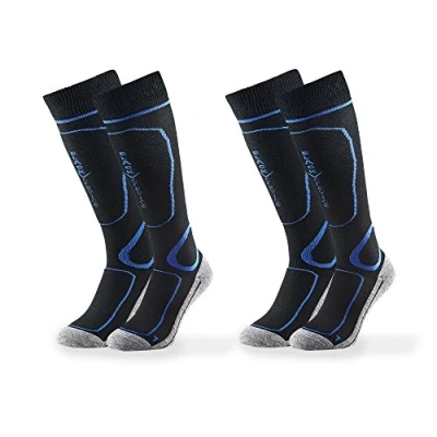 Black Crevice Adult Ski Socks, 2 Pairs, Multicoloured (Black/Blue) 31 34