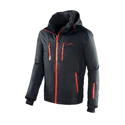 High wearing comfort – the elastic fabric of the ski jacket made from 100% polyester and inner jersey ensures a comfortable and light feel on your skin with absolute freedom of movement Warm and comfortable – the men's winter jacket impresses with a very high breathability, taped seams and a 5000 mm hydrostatic head for best, durable protection against wind and moisture Best protection: elastic cuffs with thumb hole, waterproof zips as well as the removable storm hood and the high collar of the men's outdoor jacket always protect you optimally Practical and reliable – the inner pockets of the men's ski jacket with cable guide for your smartphone or even for your ski goggles as well as the ski pass pocket are particularly practical BLACK CREVICE - As an Austrian company, we know what matters when it comes to winter and outdoor equipment. Our products combine optimal protection with the highest level of comfort