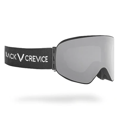 Black Crevice Ski Goggles with Cylindrical Lenses Black/Silver Mirror