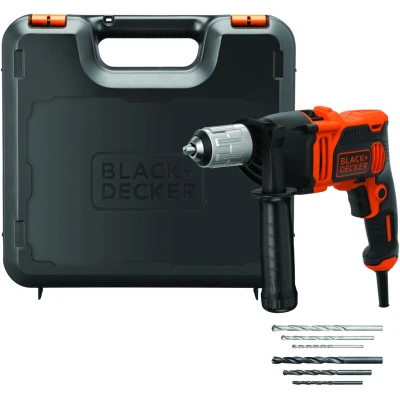 General description BLACK & DECKER BEH850K is a powerful 240V percussion drill designed for various drilling tasks. With a robust 840 Watt motor, this drill offers variable speed and reversing functions, making it versatile for both professional and DIY projects. It features a 13mm keyless chuck for easy bit changes and comes with a convenient carry case for portability and storage. Technical specifications Power: 840 Watt Voltage: 240V Chuck size: 13mm keyless