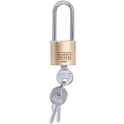 Key padlock – The key padlock is made of hardened steel and has a weather-resistant coating for long-lasting durability. Suitable for outdoor use – This padlock is designed for outdoor use and can withstand rain or other adverse weather conditions, making it ideal for garden gates, sheds and more. Versatile use: whether you want to secure your possessions, tool box or lockers, BLACK+DECKER offers the ultimate safety solution. Includes 3 keys – with 3 included keys, you don't have to worry about losing spare keys, and you can even share them with a friend or family member. Extra long shackle – the extra long shackle makes it easier to use the padlock in different situations and offers more space to secure it securely., Weight: 0.1763698096 pounds, Manufacturer: BLACK+DECKER