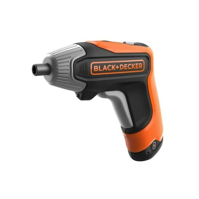 3.6V Rapid Driver Screwdriver Black & Decker BCF611. Product type: Power screwdriver, Handle shape: Pistol handle, Product colour: Orange. Torque (max): 5.5 N⋅m. Power source: Battery, Battery voltage: 3.6 V, Battery life: 1 h. Number of bits: 10 pc(s), Screwdrivers/bits tips included: Hex (imperial), PZ3, Slot The Black+Decker 3.6v Rapid Driver screwdriver is the perfect tool to help tackle those flat pack furniture tasks. Thanks to its fast charge technology, this screwdriver is up and running in just 15 minutes with sufficient power to drive up to 100 screws, or 500 screws after 60 minutes, enabling you to fix furniture, build a bookshelf, or finish any flat pack challenge. The Rapid Driver comes in a premium hard case which has been designed to fit perfectly into kitchen draws, allowing it to be kept close at hand ready for your next task. Features Built-in light Yes Product colour Orange Handle shape Pistol handle Product type Power screwdriver Performance Torque (max) 5.5 N⋅m Power Battery life 1 h Battery voltage 3.6 V Power source Battery Packaging content Screwdriver bit Yes Screwdrivers/bits tips included Hex (imperial), PZ3, Slot Number of bits 10 pc(s) Carrying case Yes