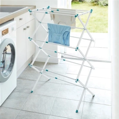 Electrical World7.5M Drying Space, Extends from 44cm to 76cm44-76cm x 38 x 100cm, Folds Flat for Storage, Anti Slip FeetTechnical Specification:Colour: Aqua