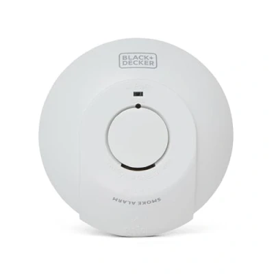 Black + Decker Mains Smoke Alarm 9V Battery Back Up. Powered Optical Detector. Interlink Alarms for full Home Protection. FAST FIX Easy Installation Base, Test Button, White