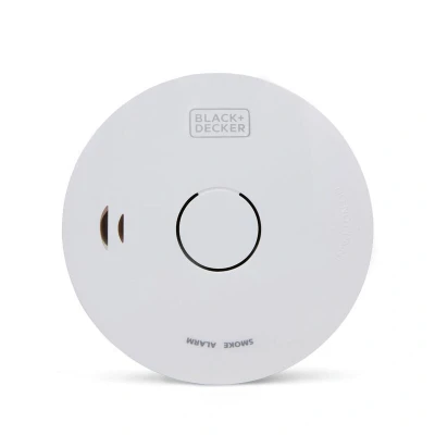 The BLACK+DECKER Smoke Alarm features a 10-year sealed battery, fast-response optical sensor, and wireless interlinking for up to 20 alarms, ensuring whole-home fire safety. Easy to install and certified to UK standards, it offers a large test/silence button and minimises false alarms for reliable home protection.