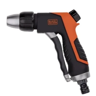 Spray gun for garden hose: with this Black+Decker spray gun for your garden hose, you have the perfect tool to water your flowers and plants. The garden sprayer has a universal connector that fits virtually any garden hose of your choice. Adjustable water flow – On the top of the spray gun there is a rotary knob that allows you to adjust the water flow of the garden sprinkler from a strong water jet to a fine spray mist. In addition, the thermoplastic rubber handle allows you to control the water flow even better. Strong and durable – the spray gun itself is made of robust ABS plastic and the nozzle is made of a zinc alloy. Therefore, the garden sprayer for your garden hose can withstand a lot and you will enjoy it for years., Manufacturer: BLACK+DECKER