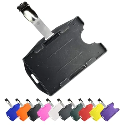 Quality ID Card Holder Which is Eco Friendly Now Bio Degradable This is a Double Card Holder and will hold two id cards only The Card Size is 86 x 54mm Same Size as a credit card Comes With A Badge Pocket Clip These Work ID Card Holder or ID Card Holders can be accessorised with Lanyards, Badge Reel and Badge clips