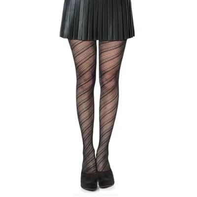 Deluxe Black Lace Patterned Fishnet Fashion Tights - Made From A Highly Durable Material And Renowned For Their Stretch. Their High Quality Design Gives Added Support To The Waistline And Offers Added Comfort When Worn. Highly Elasticated Material Allows These Tights To Fit A Wide Range Of Body Shapes And Sizes, One Size Comfortably Fitting a UK 6, 8, 10,12, 14 & 16. Couple With Your Favourite Dress, Skirt, Shorts Or Jeans For That Perfect Funky Outfit! One Size, Striped Print