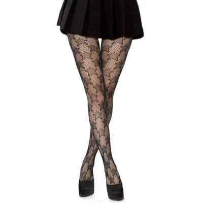 Deluxe Black Lace Patterned Fishnet Fashion Tights - Made From A Highly Durable Material And Renowned For Their Stretch. Their High Quality Design Gives Added Support To The Waistline And Offers Added Comfort When Worn. Highly Elasticated Material Allows These Tights To Fit A Wide Range Of Body Shapes And Sizes, One Size Comfortably Fitting a UK 6, 8, 10,12, 14 & 16. Couple With Your Favourite Dress, Skirt, Shorts Or Jeans For That Perfect Funky Outfit! One Size, Star Print