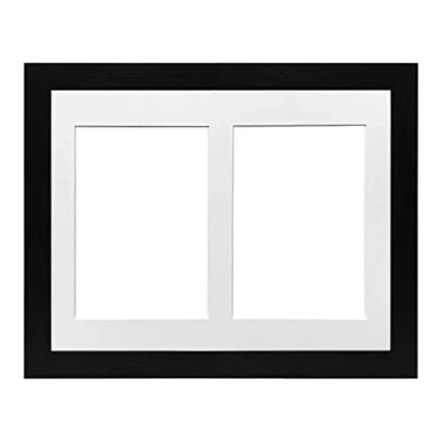 Black Frame 10x8' Multi Aperture Picture with White Mount to fit (2x) 6x4' Photos Perspex Sheet Tabletop & Wall Mountable Landscape or Portrait