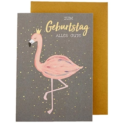 Greeting card, greeting card, card. Birthday. Includes envelope in: gold. Black & Gold Flamingo Birthday Card 11.6 x 16.6 cm
