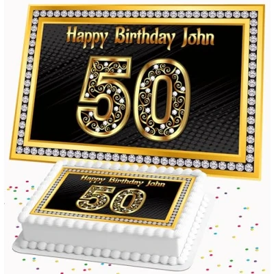 BLACK GOLD RECTANGLE BIRTHDAY PERSONALISED ICING EDIBLE COSTCO CAKE TOPPER DECORATION R1 202 A4