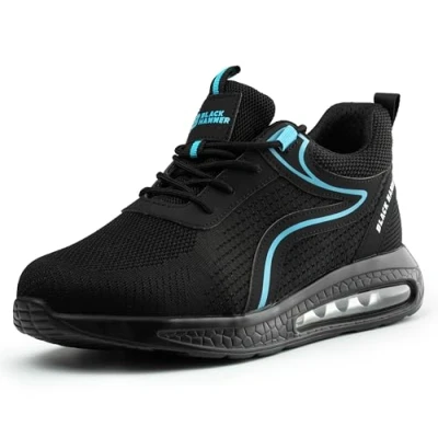 Black Hammer Safety Trainers for Men Steel Toe Cap Work Shoes with Lace Up Design Non Slip Perfect Warehouse Trade and Daily Use Ideal Trekking Hiker Footwear 3200 S1P SRC (10 UK)