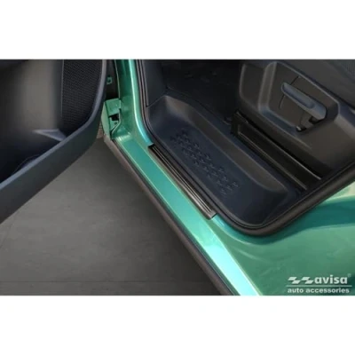 Black Inox door sill protectors compatible with Volkswagen ID.Buzz 2022 'Lines' 2 pieces