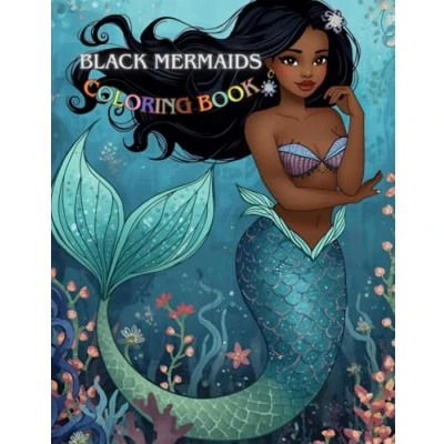 Black Mermaids Coloring Book: Ocean Dreams Beautiful Mermaid Girls, Dolphins & Animals. Relaxing Fantasy Sea Life Art for Kids, Teens Adults