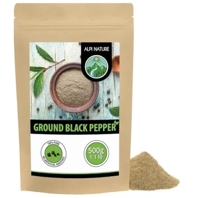 black pepper ground (500g, 1.1lb), 100% natural, without additives, vegan, peppercorns