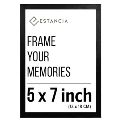 Black Pine Wood Photo Frame 5x7 inch (13x18 cm) with Shatterproof Acrylic Glass Modern 5 x 7 (13 18 Wooden Picture