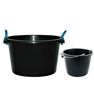 Rope Bucket- These buckets are manufactured from a heavy-duty plastic, making them particularly well suited for the mixing and transporting of dry and wet cement, plaster and mortar mixes. Also comes with 2 carry rope handles to allow the building container to be lifted and moved by two people making the bucket portable for added convenience. 3 Gallon Bucket - This bucket is ideal for carrying bricks, mixing, plastering, plumbing, landscape gardening, fishing, mechanics etc. Made with Strong Plastic and durable with a Metal handle, eliminates general breaks that normally occur from excessive use. Suitable for a range of garden or household jobs, incorporating a strong metal handle with a black Rubber grip on Handle to make carrying easier and more comfortable. Bucket features and easy to pour spout to reduce any spillage on your job. 3 Gallon / 14 Litre - This durable builders’ bucket is designed to hold 3 gallons of liquid (about 14 litres).