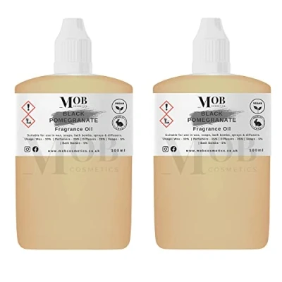 Black Pomegranate Luxury and Designer Fragrance Oil Highly Concentrated Perfect for Candles, Soaps, Bath Bombs, Diffusers, Wax Melts UK Made Vegan (Black Pomegranate, 100ml (Pack of 2))