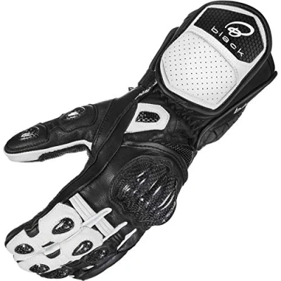 Cow and Goat Leather Construction - Specifically selected for maximum strength and flexibility Lining made with 100% Dupont Kevlar Fibres Carbon Fibre Knuckle Armour - Designed to offer a premium in armour Padded Comfort Liner - Perfectly complimenting the huge amount of protection with premium comfort Perforated Leather - Vented for comfort on the hottest of days