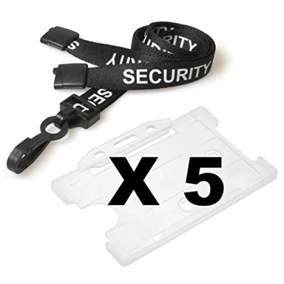 Black Security Lanyard from PCL Media ltd SIA Badge Holder Pre Printed with Card Hold Safety Breakaway & Clear Open Faced ID (Pack of 5)