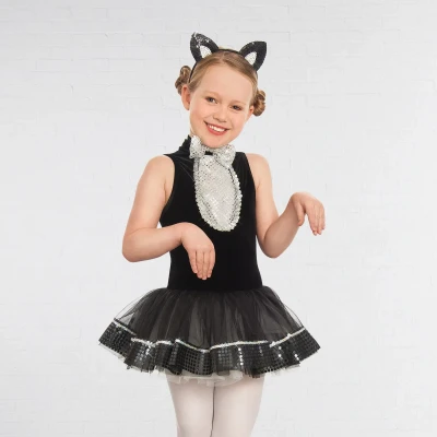 * Black sequin cat ears on headbandProduct Warnings:Warning: Not suitable for children under 36 monthsWarning: Small parts. Choking hazard. Adult supervision recommendedWarning: Keep away from fireWarning: Dancewear/Costume designed for training, exam or stage use only